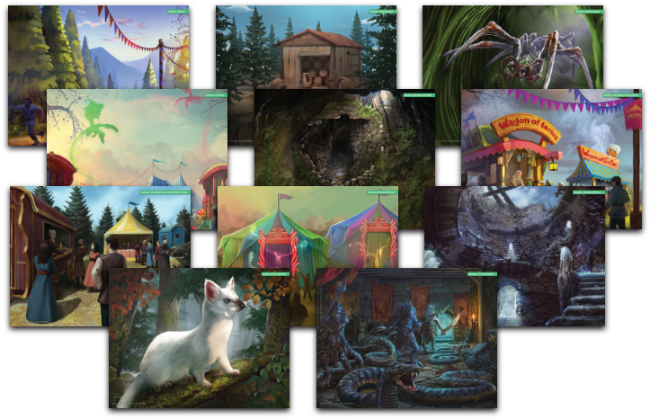 The extensive handouts included with every adventure package are meant to produce an immersive experience. All of our artwork comes from real artists from all around the world in a variety of styles that you combine with your weaving tale.