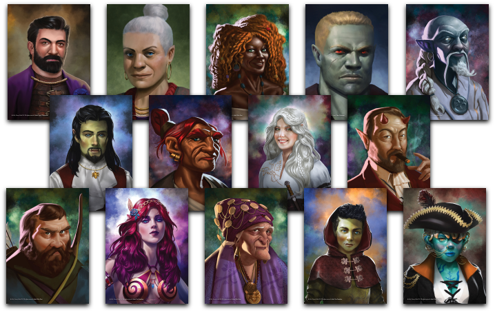 All of the significant NPCs that the players will encounter in the adventure are portraited. Plus, they have descriptions, info, and sometimes even stats on the back. Also, you get a cheat sheet to reference all NPCs on the fly!