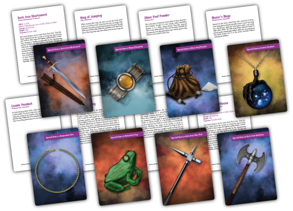 There is one thing that often entices players more than anything: loot. Every chapter bundle has a pack of Special Item Cards included that can be handed out to your party as they pick up items during their adventures. This allows players physically building their loot collections to see spoils pile up, rather than simply making a written entry for them on their character sheets.