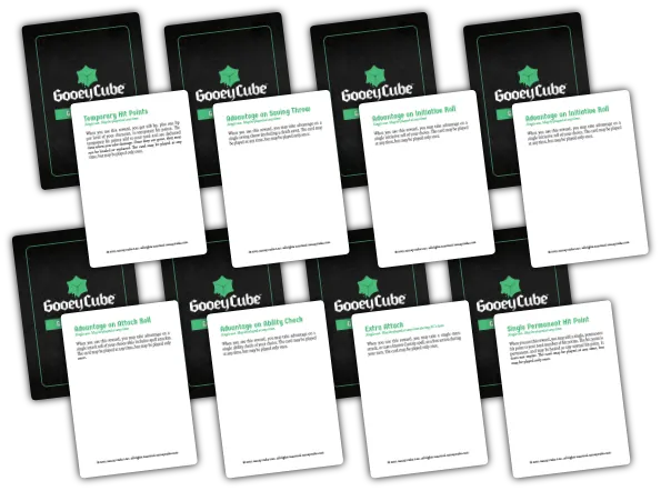 These were innovated in our home games, and proved so popular that we brought them to Gooey Cube. Give them to players in-between leveling to reward them for problem solving, roleplay, combat excellence, achieving goals and objectives, and more. These incentives can make a quest feel truly heroic.