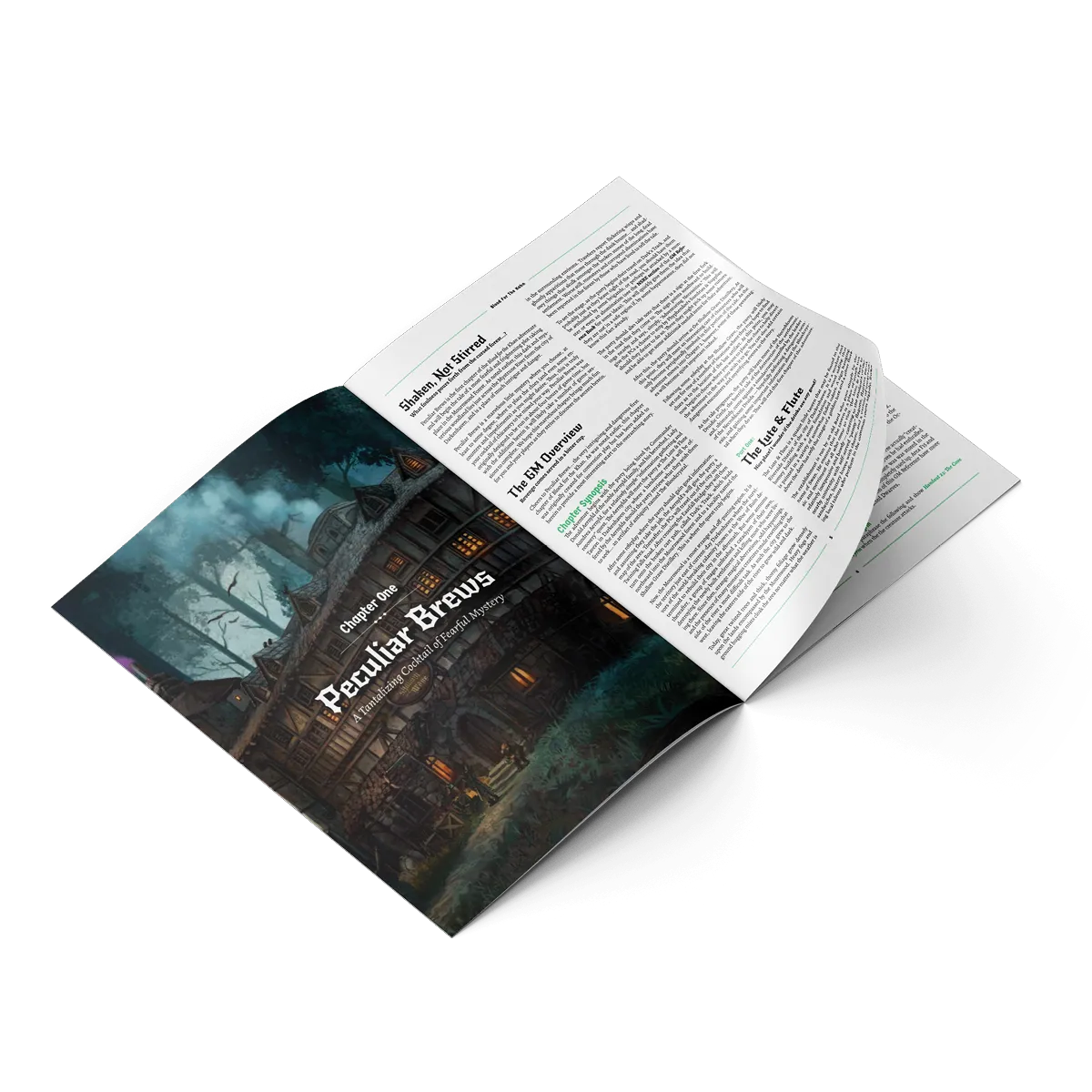 An enjoyable-to-read adventure guide with story cues and passages to read to players. This spiral-bound tome, with over 44 pages of meticulously crafted content, is designed to enhance your tabletop adventures with some rich history and intricate lore of the Mournwood where this adventure takes place.