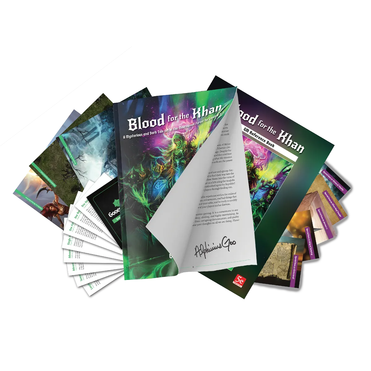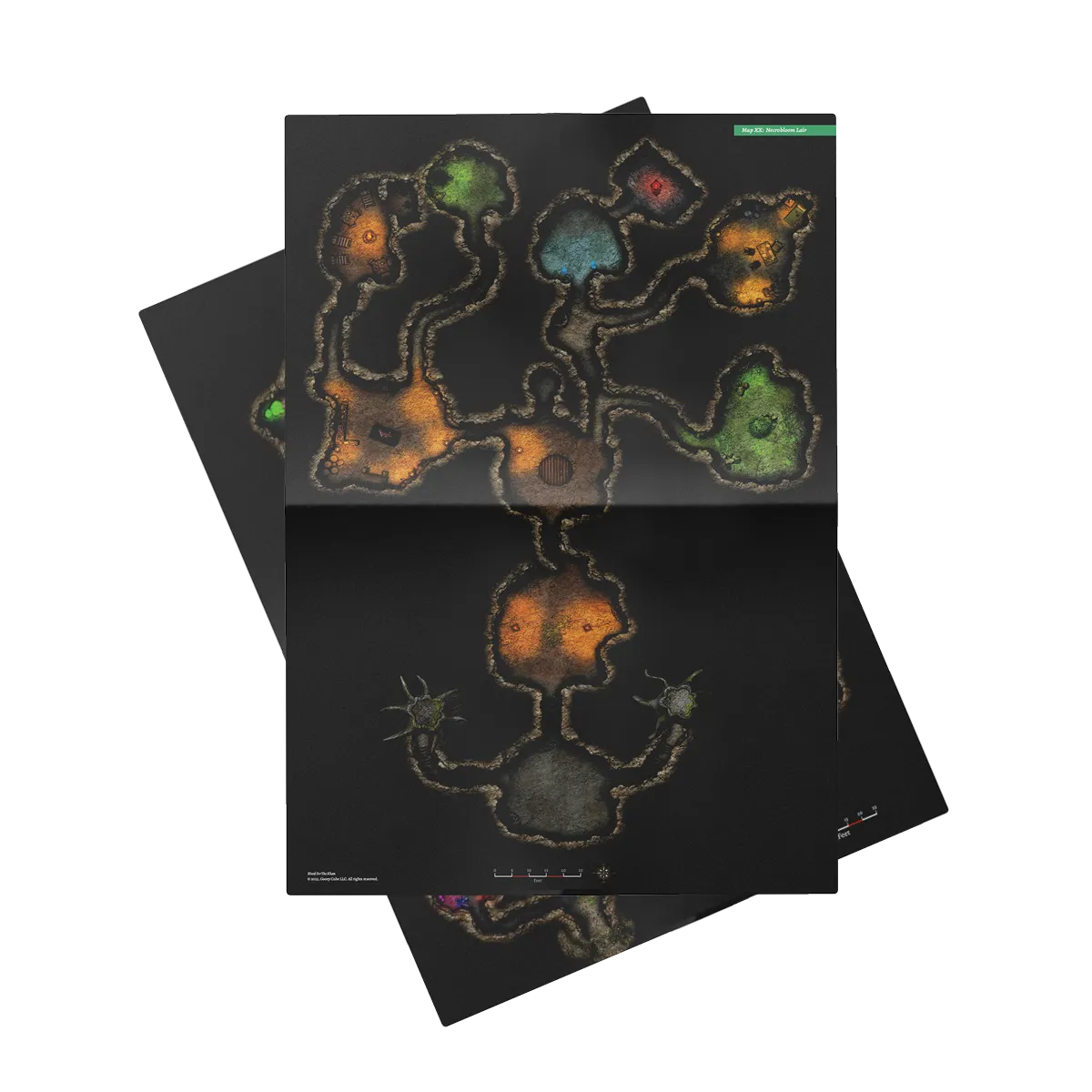 Created by a maestro of map making, every area the Player Characters visit is painted in glorious detail. Two versions of a single map are included; one spoiler-free for the players, and one for the GM. The GM's version is labeled clearly with directions to encounters and areas of interest within the GM Reference Book.