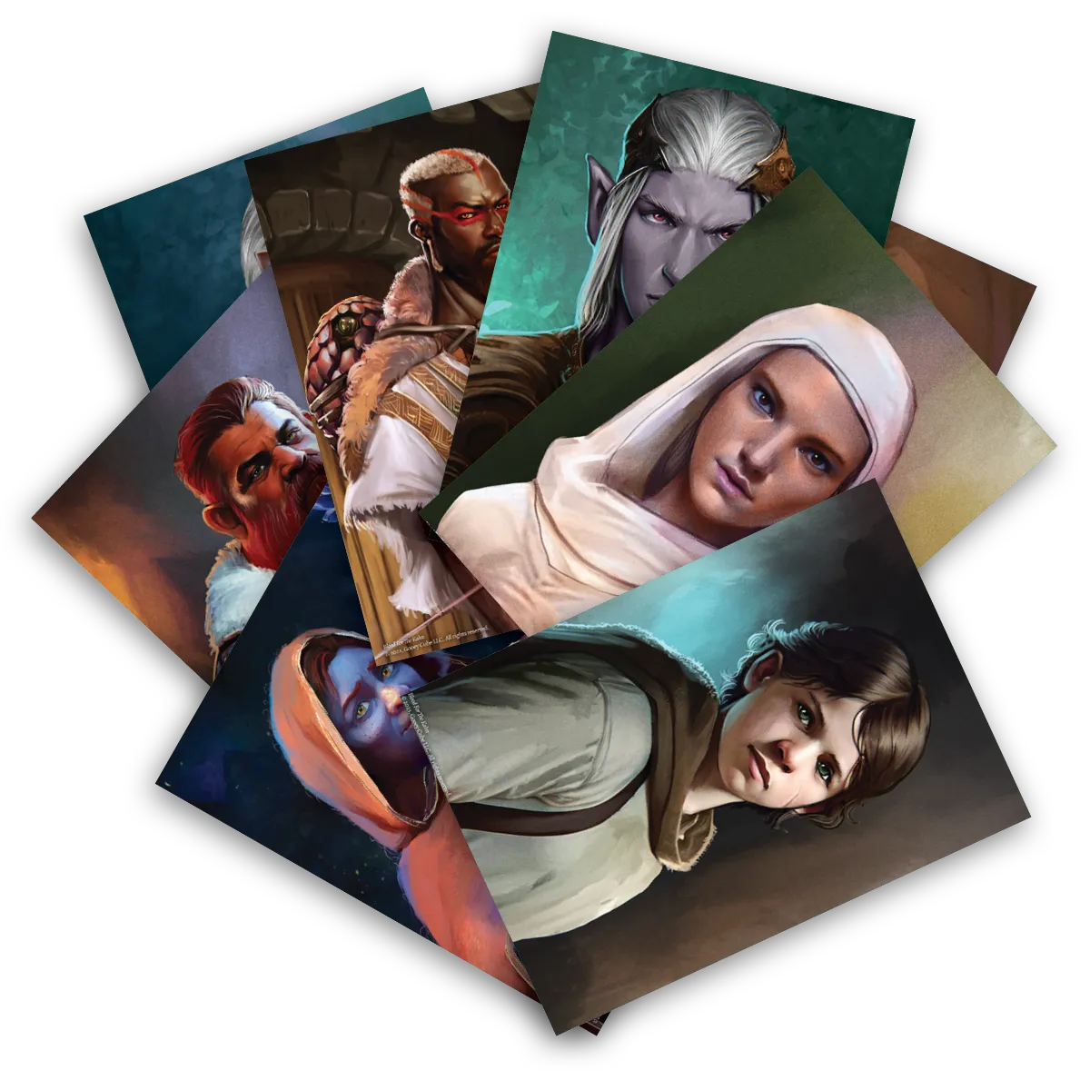 Bring the characters of the Mournwood to life in 24 Beautiful NPC Portraits. Scrolling through image-hosting websites for hours finding art that is close enough to work for an NPC is now a thing of the past! Friends, allies, and adversaries are depicted on incredible full-color handouts. They can be held up when prompted by the Adventure Book, and players will be surprised by their GM appearing to have memorized everything about the NPC! In reality, everything needed to know is written on the reverse side, with space for notes about accents, relationships, mannerisms, or other personal flairs a GM may bring to the character.