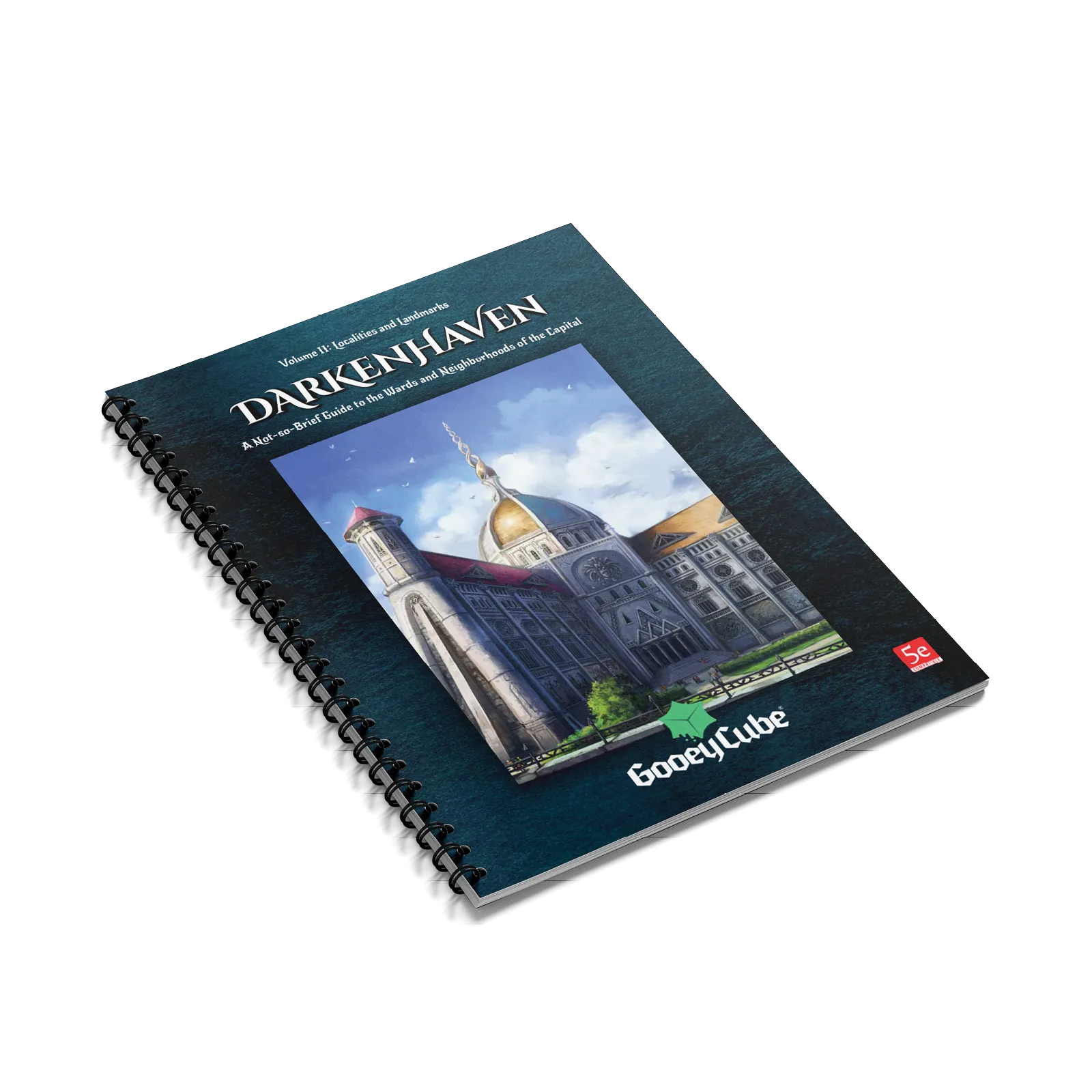 This book takes an in-depth look at each district of Darkenhaven, both on a macro and micro level, down to individual buildings and their associated NPC’s and resources.