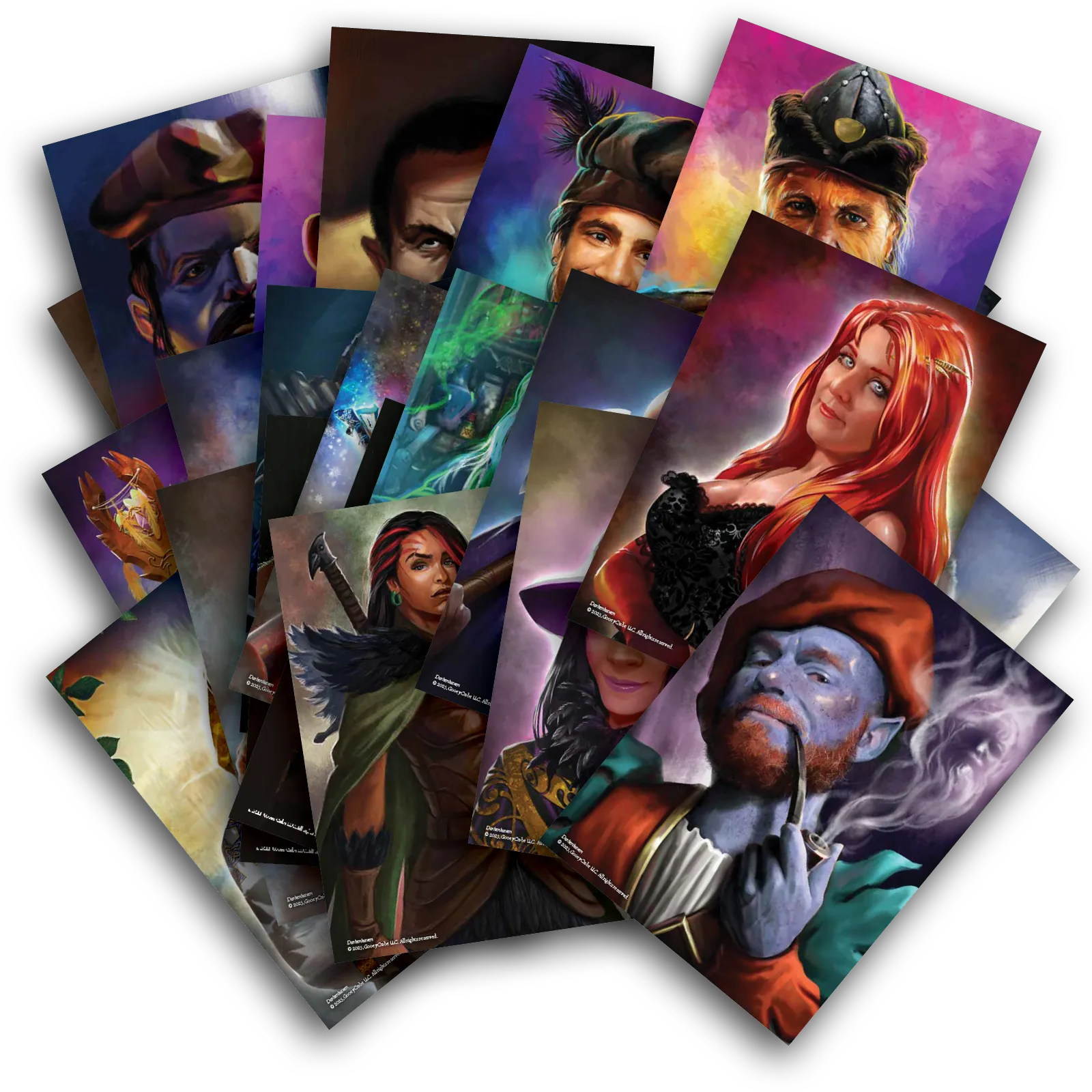 Scrolling through image-hosting websites for hours finding art that is close enough to work for an NPC is now a thing of the past! Every friend, ally, and adversary is depicted on incredible full-color handouts. They can be held up when prompted by the Adventure Book, and players will be surprised by their GM appearing to have memorized everything about the NPC! In reality, everything needed to know is written on the reverse side, with space for notes about accents, relationships, mannerisms, or other personal flairs a GM may bring to the character.