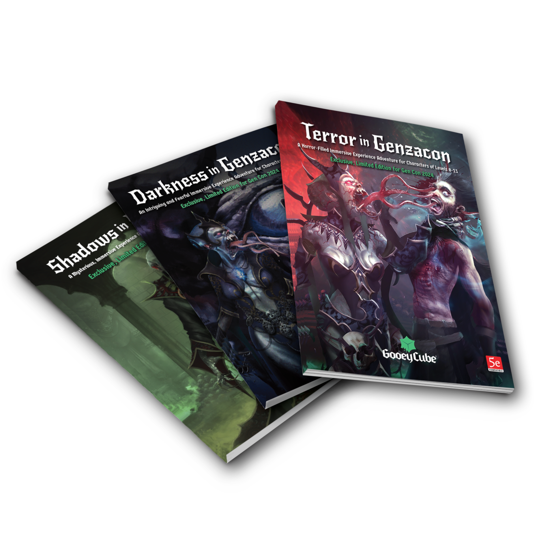 Digital PDF & Physical Copies of Terror in Genzacon, Darkness in Genzacon, and Shadows in Genzacon.