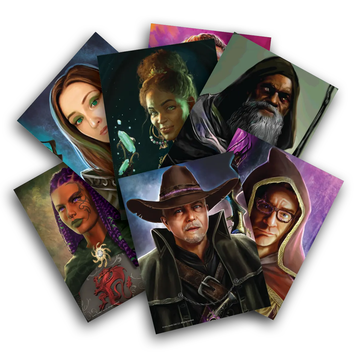 Scrolling through image-hosting websites for hours finding art that is close enough to work for an NPC is now a thing of the past! Every friend, ally, and adversary is depicted on incredible full-color handouts. They can be held up when prompted by the Adventure Book, and players will be surprised by their GM appearing to have memorized everything about the NPC! In reality, everything needed to know is written on the reverse side, with space for notes about accents, relationships, mannerisms, or other personal flairs a GM may bring to the character.