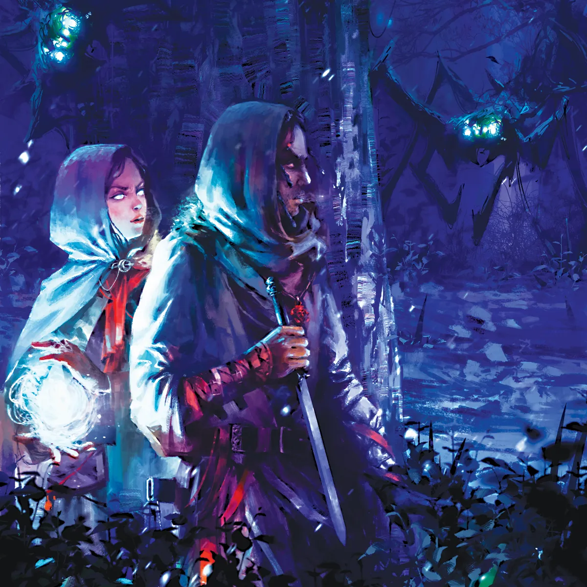 What follows is a fearful and intense journey beneath a shadowy canopy of Dumal-Wood and Shadepine as the snowstorm closes in on the troupe’s location. Quickly after that, the hunters become the hunted, as ghastly creatures track the party. But the woods hold more than just evil denizens; a foreboding tower reaches up like a blackened fang towards the darkening sky; A strange spirit walks the paths, and a long-lost secret will soon be discovered.