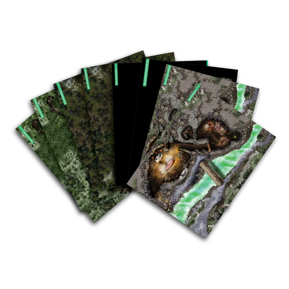 Created by a maestro of map making, every area the Player Characters visit is painted in glorious detail - plus a bonus black and white map! Two versions of a single map are included; one spoiler-free for the players, and one for the GM. The GM's version is labeled clearly with directions to encounters and areas of interest within the GM Reference Book.