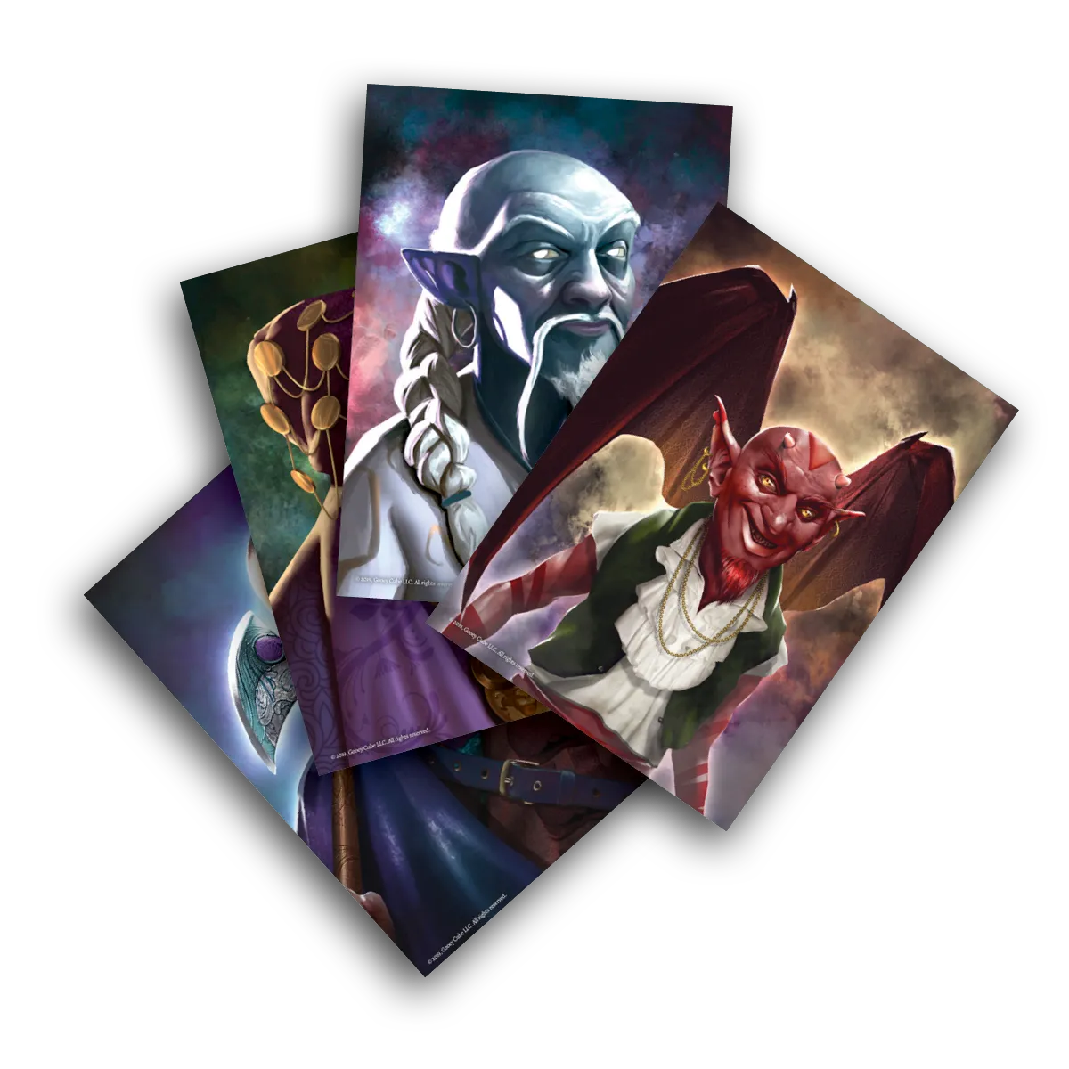 Scrolling through image-hosting websites for hours finding art that is close enough to work for an NPC is now a thing of the past! Every friend, ally, and adversary is depicted on incredible full-color handouts. They can be held up when prompted by the Adventure Book, and players will be surprised by their GM appearing to have memorized everything about the NPC! In reality, everything needed to know is written on the reverse side, with space for notes about accents, relationships, mannerisms, or other personal flairs a GM may bring to the character.