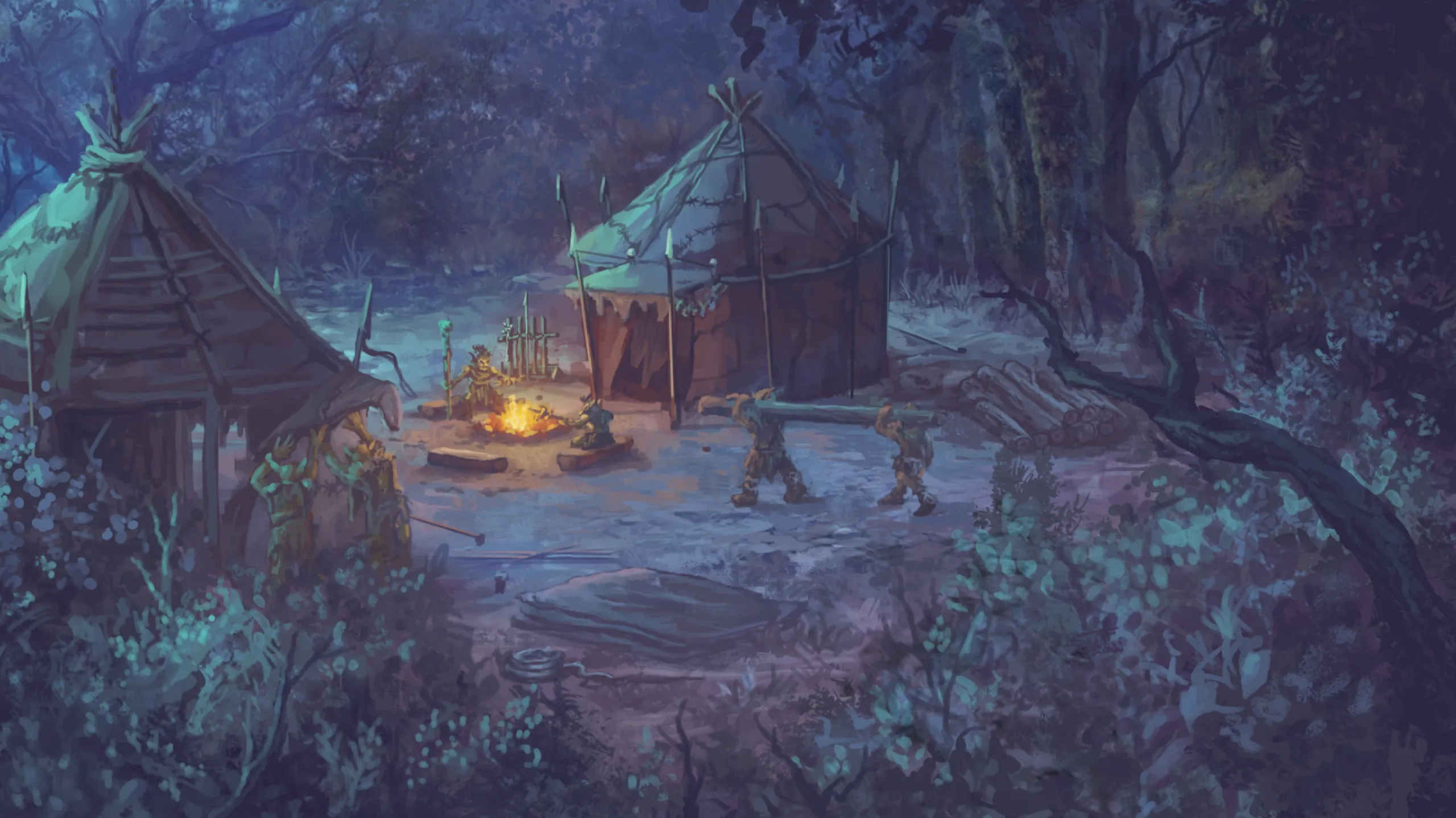 The days loom dark as the wagons roll on toward Prondadol. Nearby, the fetid, stinking Blackrot Bog constantly reminds you of the shadows that lie upon your hearts. In the sky, Zaraghast – the dreaded red star – burns day and night, bringing much fear to you and your fellow members of the Blue Veil. It was a horrid omen, this red face of death in the heavens. Now you have lost one of your leaders, and two others are gravely injured. Then, as the wagons draw near the King’s Causeway – the long, wood-and-stone bridge that traverses the bog – a terrible storm sweeps in. Before it breaks, you will need to make camp; or face the blizzard's fury while on the causeway. There is no option. Though your instincts would have you avoid it, you must pull from the road and set camp at the edge of a small forest that borders the bog. Known as the Mistwood Hollows, it has a fearful and dark reputation. But as the troupe prepares the site, Vestia and Brayan come to you. The prints of more than a few Ogres have been seen at the wood's edge. Not knowing where they are and how many they are will put the sheltering troupe at serious risk. Before the storm hits, you have a job to do – enter the dark woods beside the road and locate the Ogres. Observe the creatures, count their numbers, and report back.