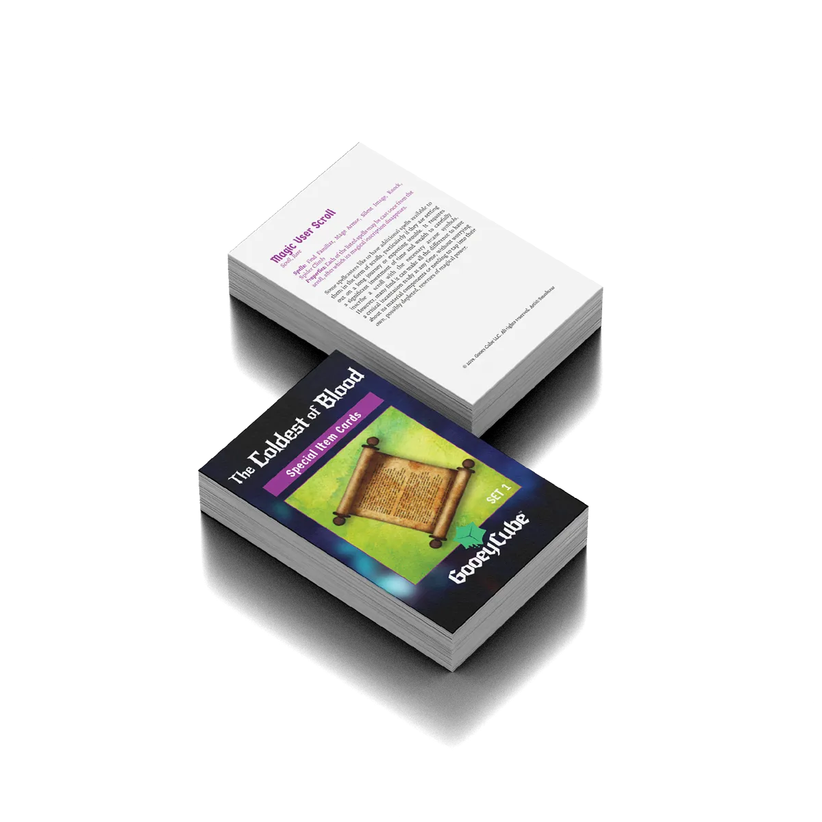 Inspiration is a fine enough reward for doing well in the game, but we like to shake it up here at Gooey Cube! Shake it up too by using Gooey Reward Cards. Choose a card from the deck! Will you receive an extra attack action? Temporary hitpoints? Or the coveted hero or fate points, which can change the destiny of a Player Character? Whatever you draw, Gooey Reward Cards add an extra layer of fun to the game!