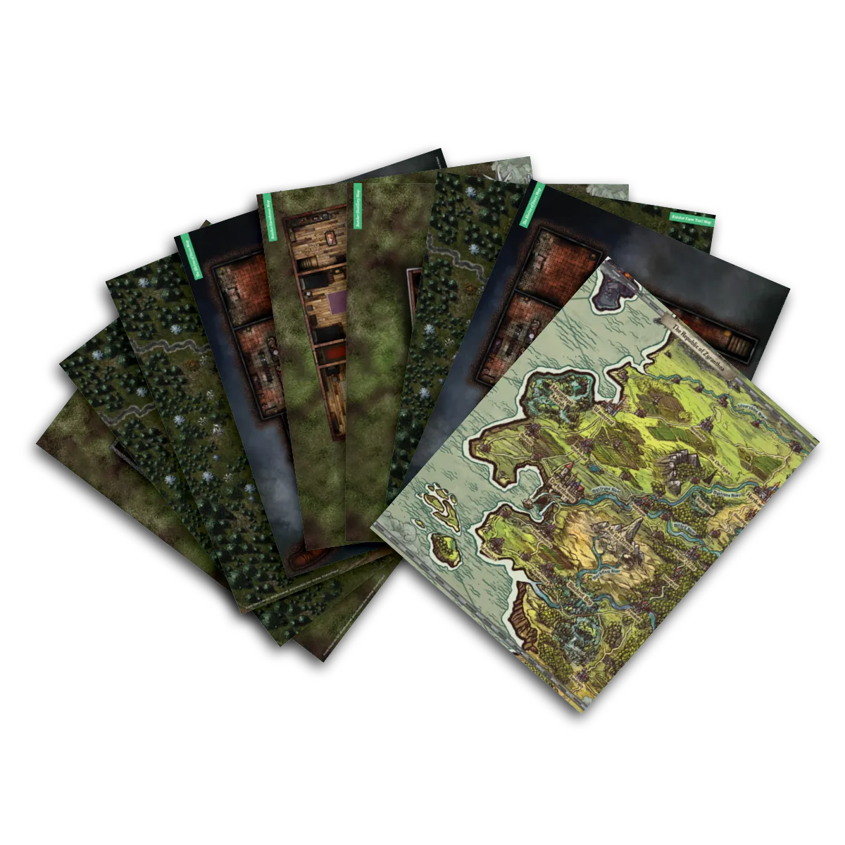 Created by a maestro of map making, every area the Player Characters visit is painted in glorious detail. Two versions of a single map are included; one spoiler-free for the players, and one for the GM. The GM's version is labeled clearly with directions to encounters and areas of interest within the GM Reference Book.