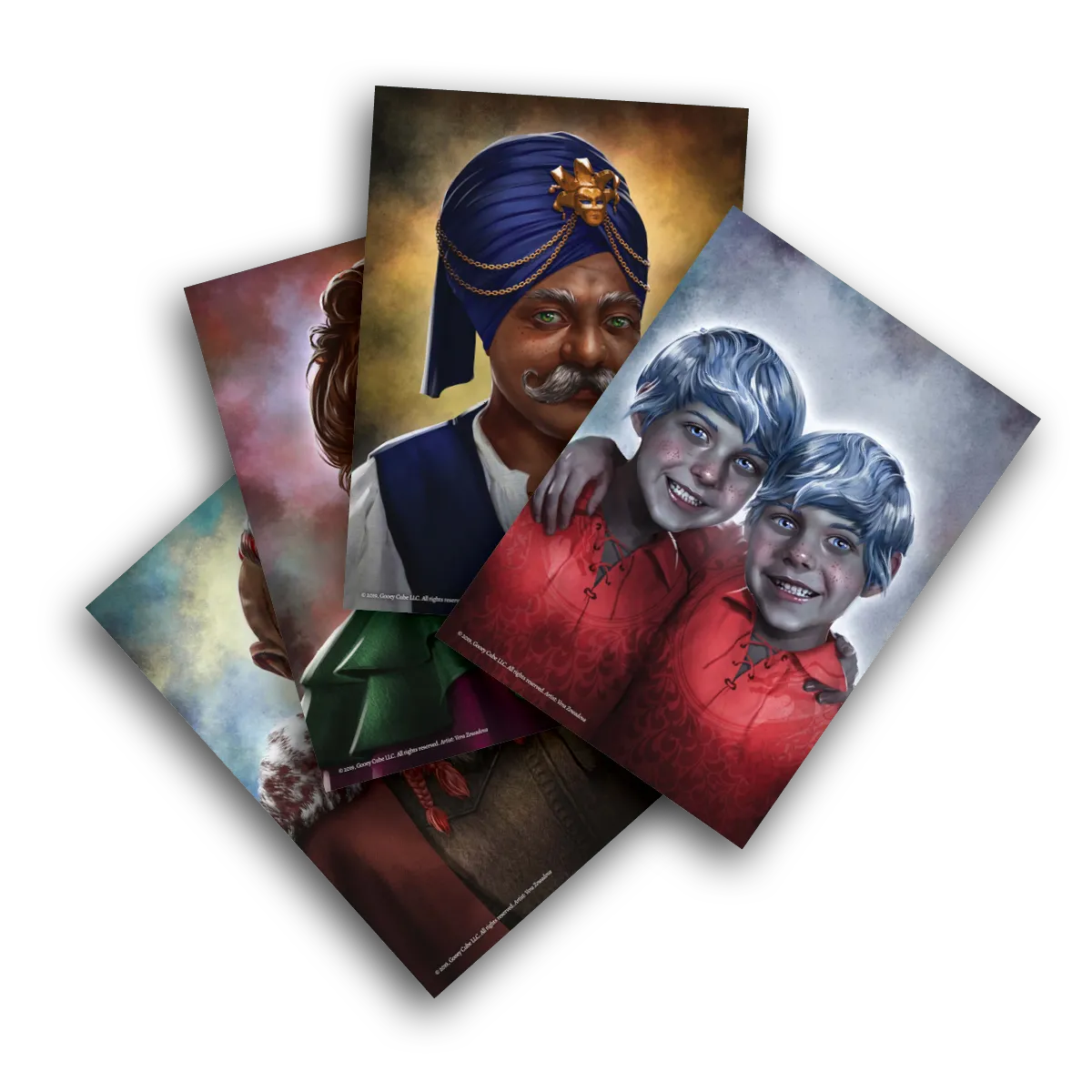 Scrolling through image-hosting websites for hours finding art that is close enough to work for an NPC is now a thing of the past! Every friend, ally, and adversary is depicted on incredible full-color handouts. They can be held up when prompted by the Adventure Book, and players will be surprised by their GM appearing to have memorized everything about the NPC! In reality, everything needed to know is written on the reverse side, with space for notes about accents, relationships, mannerisms, or other personal flairs a GM may bring to the character.