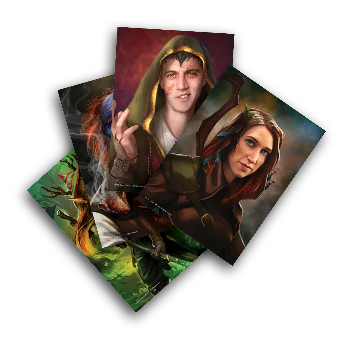 Scrolling through image-hosting websites for hours finding art that is close enough to work for an NPC is now a thing of the past! Every friend, ally, and adversary is depicted on incredible full-color handouts. They can be held up when prompted by the Adventure Book, and players will be surprised by their GM appearing to have memorized everything about the NPC! In reality, everything needed to know is written on the reverse side, with space for notes about accents, relationships, mannerisms, or other personal flairs a GM may bring to the character.