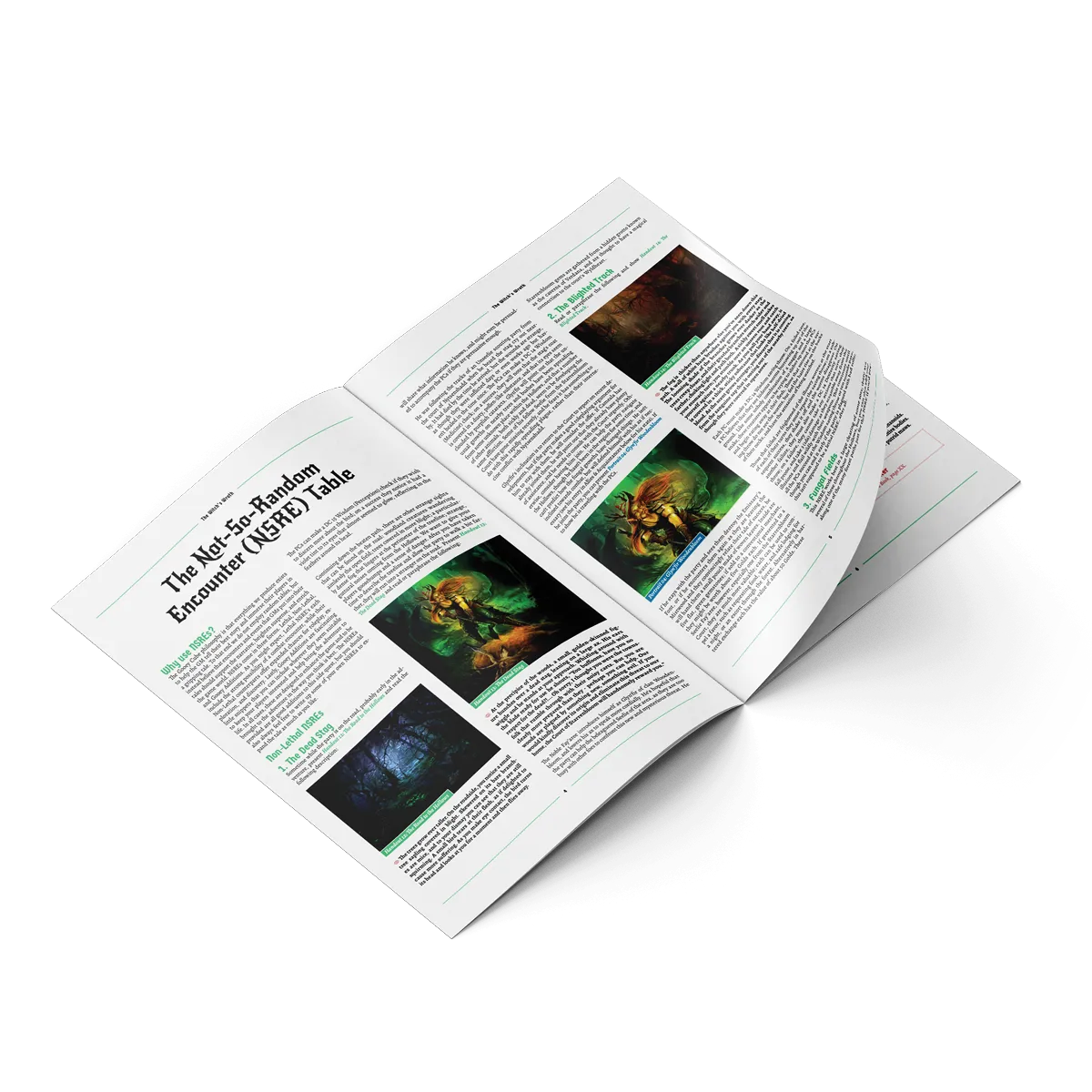 A key component of our easy-to-use design, our GM Reference Book holds all stat blocks and other pertinent information necessary for the main plot. Not only this, but optional encounters, which we call Not-So-Random-Encounters, or NSRE’S, are included. Each one is more than a one-line hook, and make for intriguing, captivating, and occasionally humorous additions to the game.